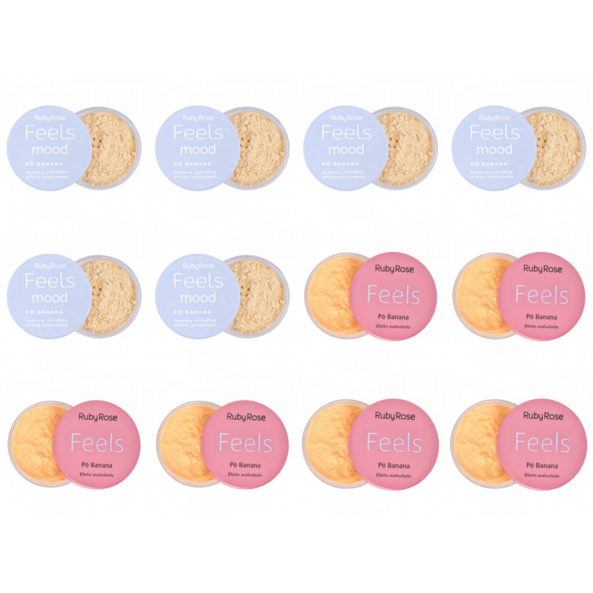 Pó de Banana Feels Ruby Rose HB850 - O Pó de Banana da linha Feels da Ruby Rose é fininho, ideal para todos os tipos de pele. Seu tom não adiciona cor, perfeito para não “estourar” no flash em fotos. Tem como função finalizar e fixar a maquiagem, oferecendo um efeito aveludado sem obstruir os poros além de não acumular nas linhas de expressão.