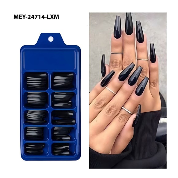 Características Técnicas - Modelo: Bailarina Alongada - Contém: Kit com 100 unhas postiças/10 tamanhos diferentes - Material: Plástico ABS de alta resistência e não trinca - Alonga e dá maior beleza e fino acabamento nas suas unhas - Os tamanhos são separados em compartimentos separados individuais para sua praticidade - Cola não inclusa