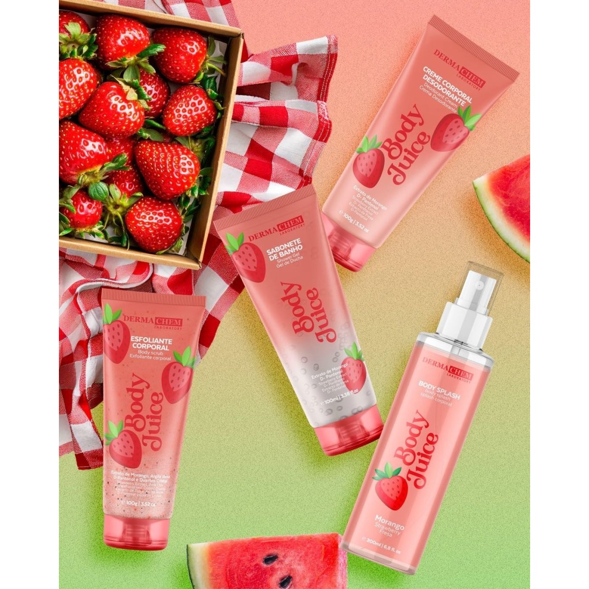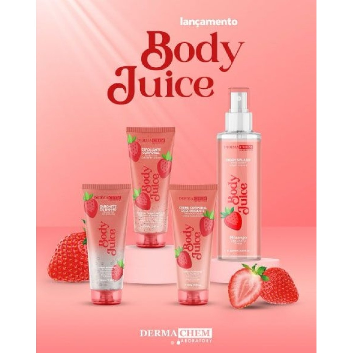 1° Sabonete de Banho – limpeza refrescante 2° Esfoliante Corporal – remove impurezas e renova a pele 3° Creme Corporal Desodorante – finalização para uma pele suave e nutrida 4° Body Juice – hidratação, maciez e perfume duradouro