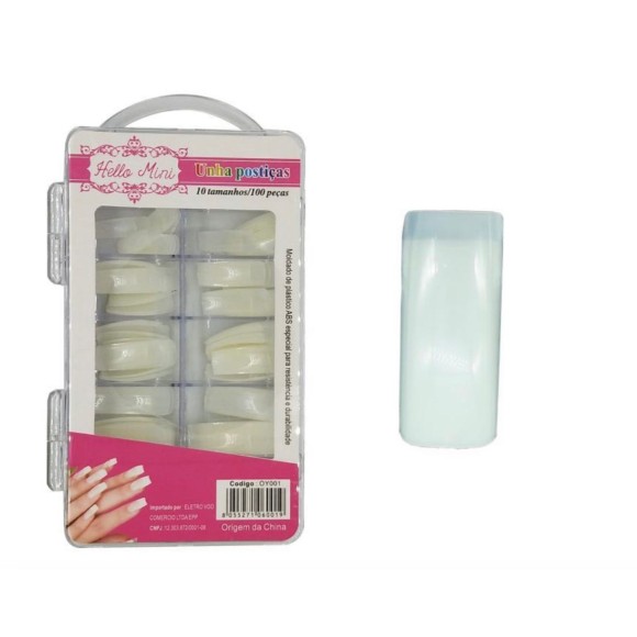 - Contém: Kit com 100 unhas postiças/10 tamanhos diferentes