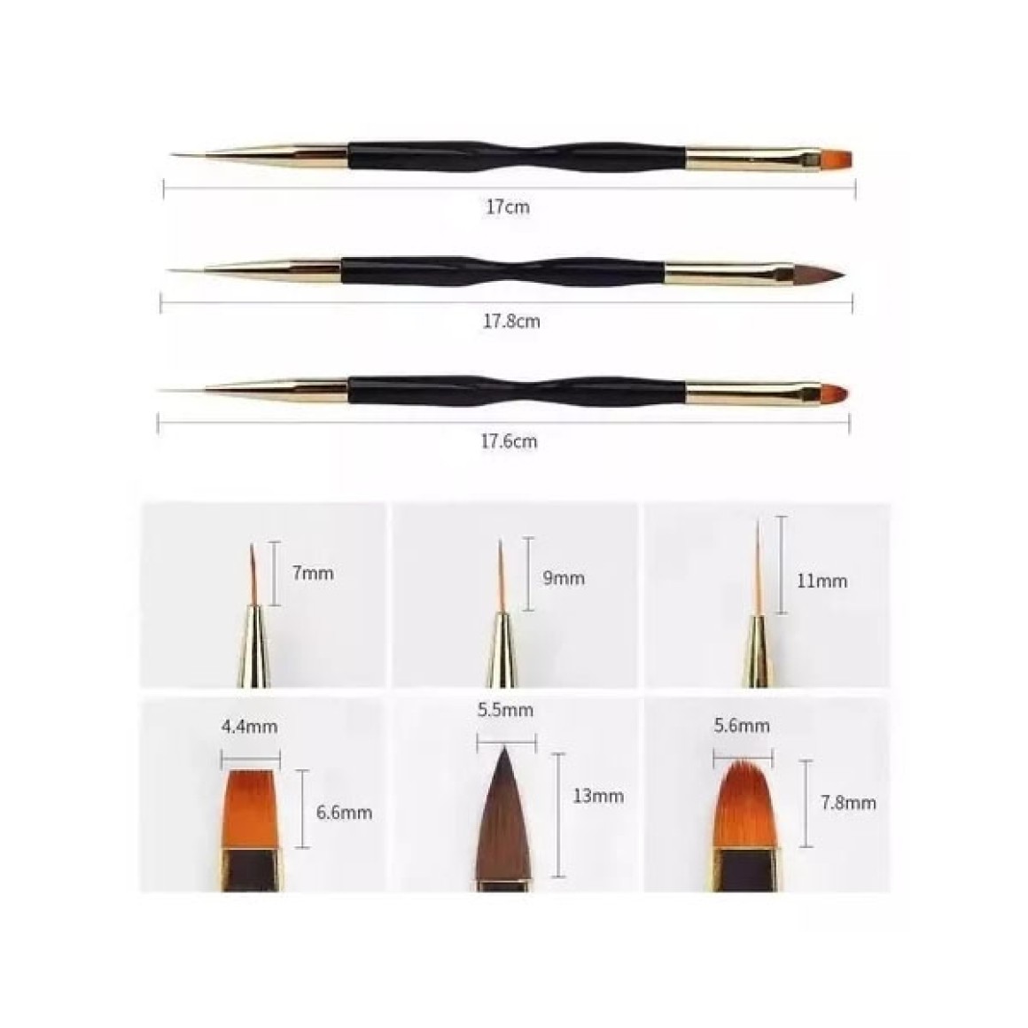 Esse Kit tem os principais pinceis que vc vai precisar para ter um excelente resultado tanto em alongamentos como na decoração, as pontas duplas tornam o seu trabalho muito mais rápido e organizado.