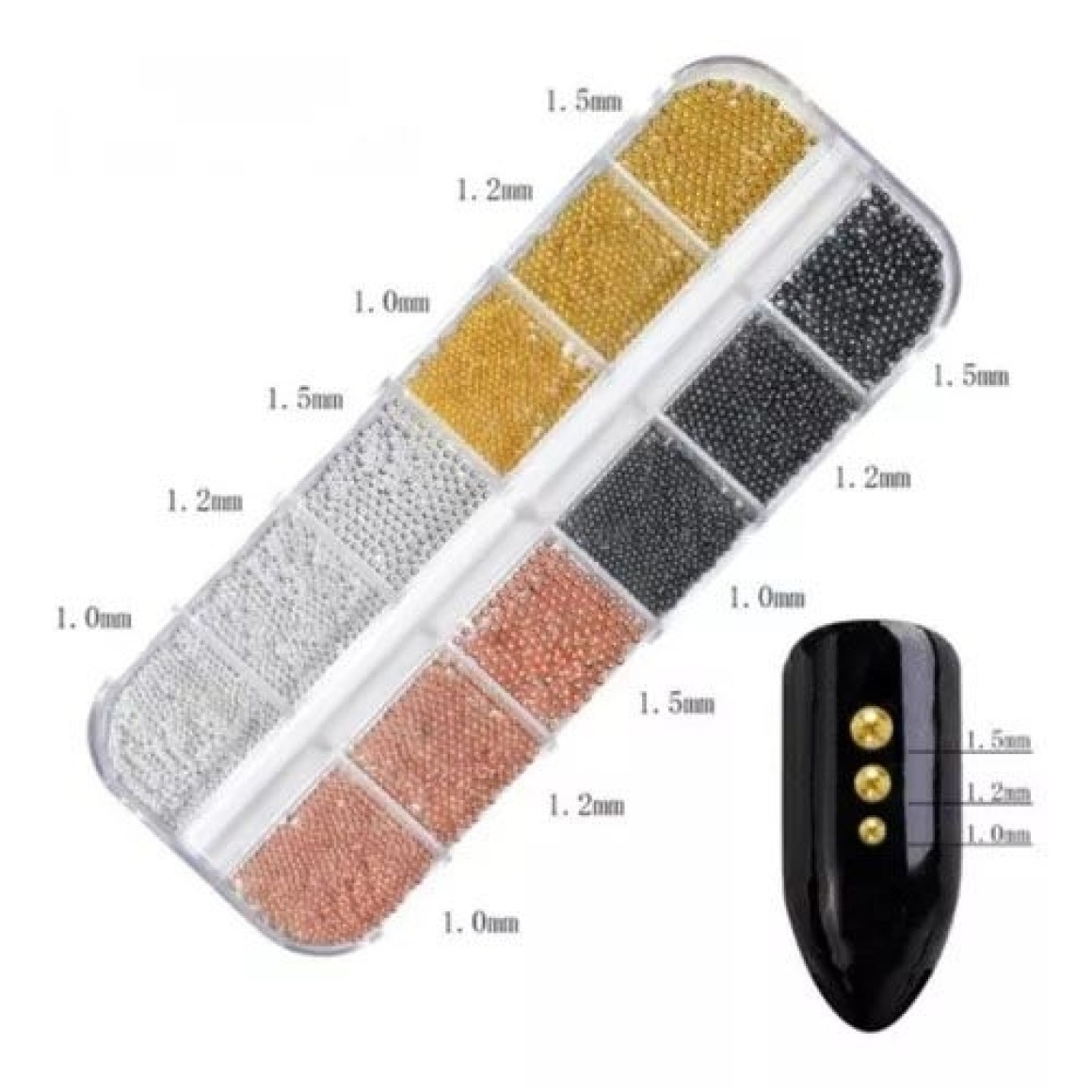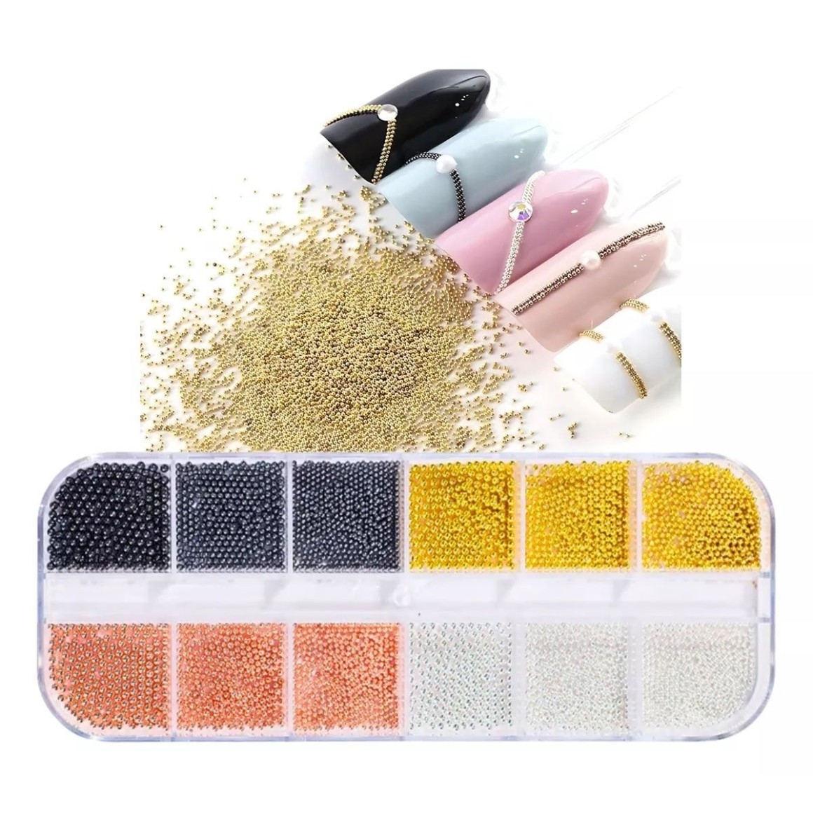 Estojo Com Strass Caviar Para Design De Unhas 4 Cores
