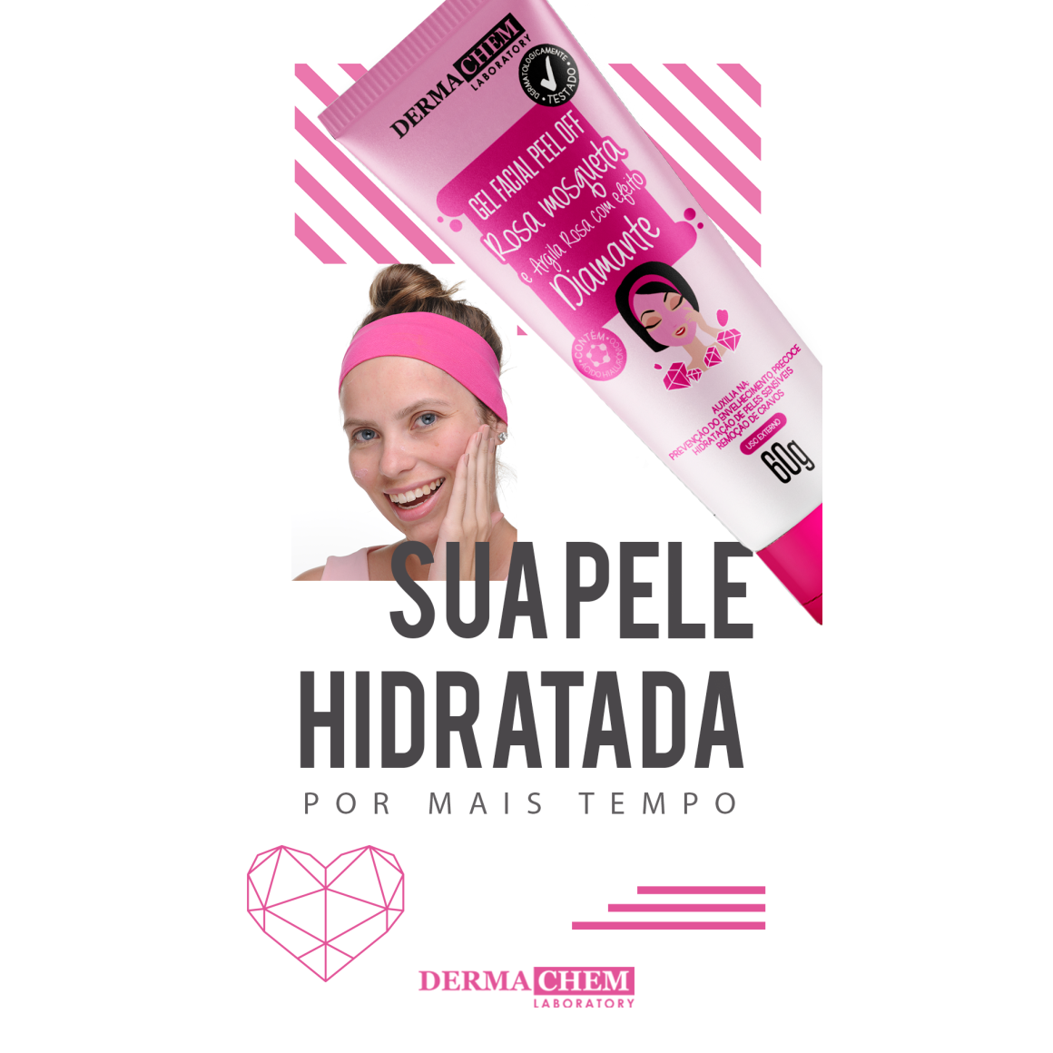 Gel Facial Peel Off Rosa Mosqueta e Argila Rosa com Efeito Diamante