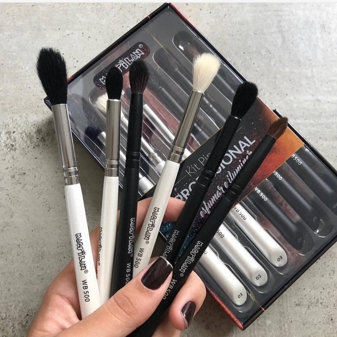 Kit Pincel Macrilan WB500 especialmente desenvolvido para aplicação profissional de sombras e iluminador. Utilize esses pincéis para aplicar e esfumar sombra nas pálpebras e no côncavo dos olhos, misturando e suavizando cores até obter o efeito desejado. Utilize também na aplicação de iluminador. Com cerdas naturais super macias, de formato especial para um acabamento impecável.