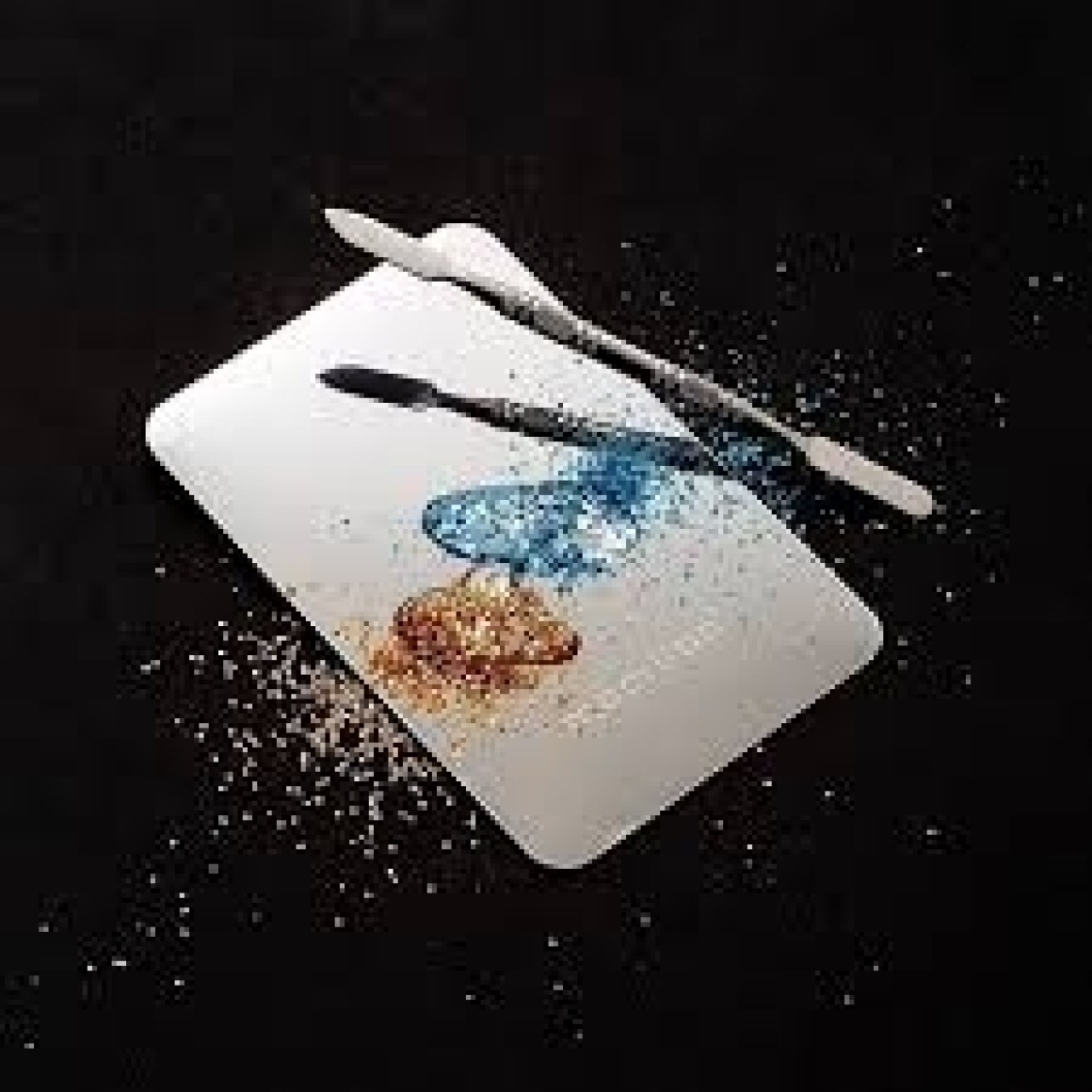 Com o auxílio da espátula, coloque os produtos na placa, misture cores se necessário, e aplique na pele com auxílio de um pincel.