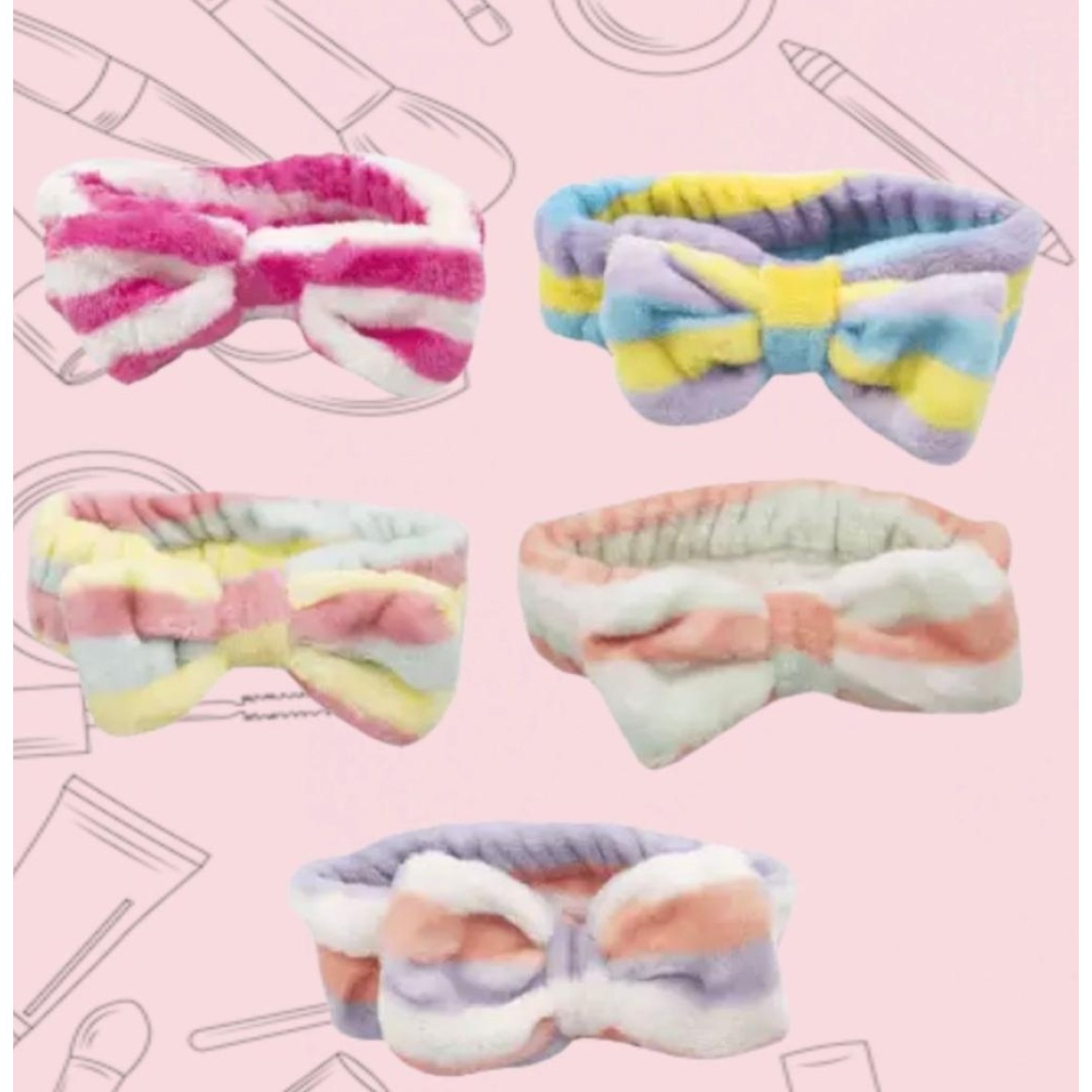 Praticidade em sua rotina de beleza! Faixa Facial Pelúcia Toalha p/ Maquiagem Cabelo Rosto: segura o cabelo próximo a testa, proporcionando conforto durante a realização de procedimentos estéticos faciais ou de maquiagem. Além de lindas, elas protegem o seu cabelo dos produtos que por ventura possam encostar nele como bases, brmas, sabonetes líquidos, cremes e etc. Elas são de pelúcia e possuem uma estampa lisa um laço muito fofo que tornam o momento da make ou do skincare muito divertidos e especiais.
