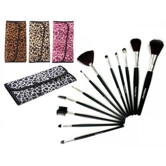 Kit pincel da Macrilan KP1-28 especialmente desenvolvido para aplicação de maquiagem. Acompanha necessáire com estampa de onça para transporte dos pincéis.