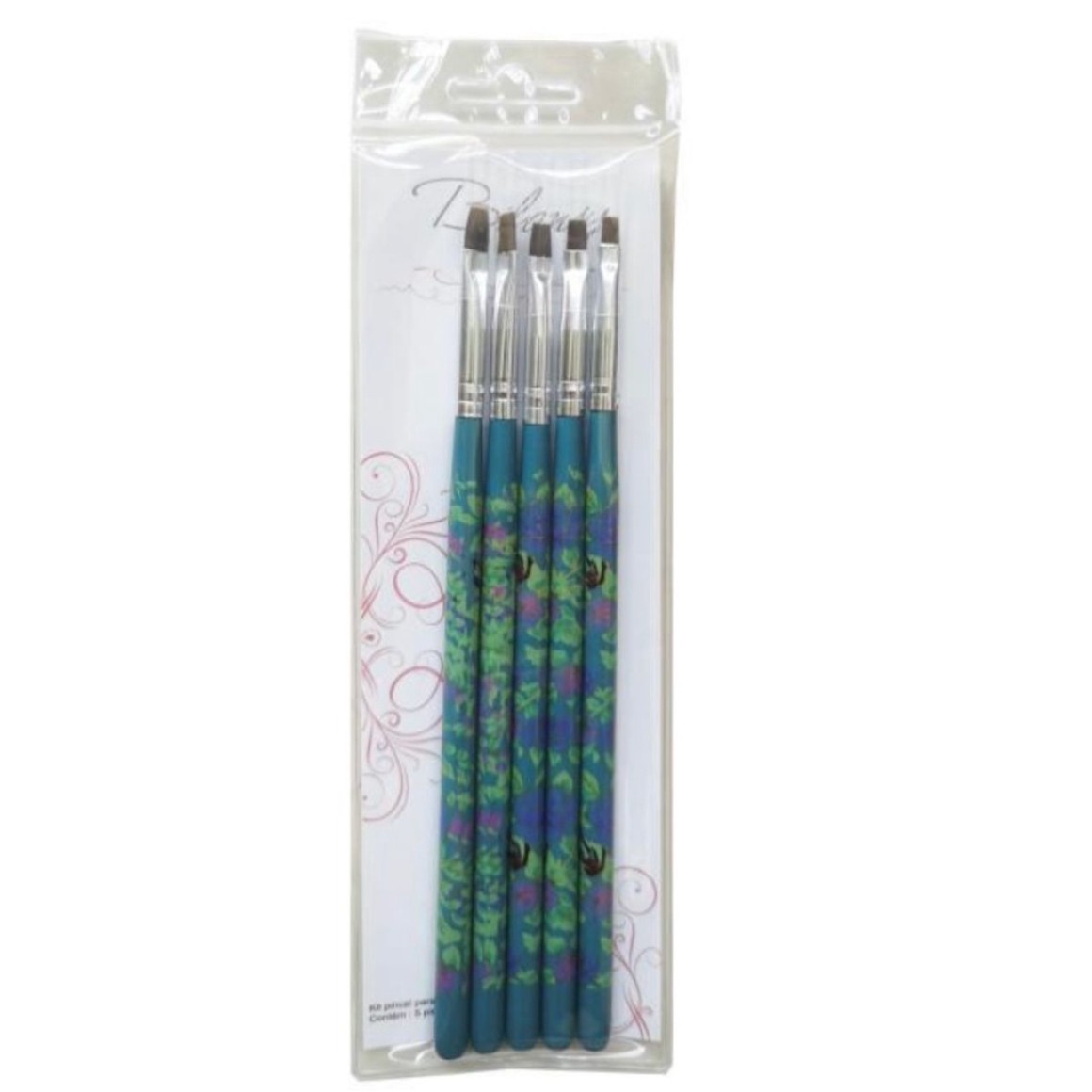 Características Técnicas Referência: PNL207-2 Qualidade profissional Contém: 5 pincéis no kit Tamanho do pincéis: Aproximadamente 19,0 cm Composição: Alumínio, madeira Cerdas: Sintéticas ponta reta