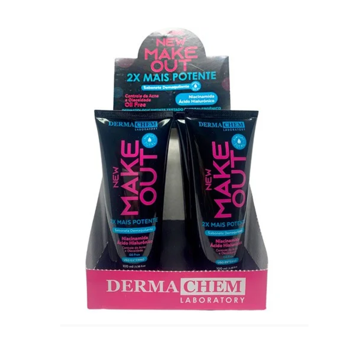 O Sabonete Demaquilante New Make Out Dermachem Laboratory, está agora com 2x mais ativo demaquilante, que torna mais rápida e eficiente a remoção da maquiagem. Além disso, contém niacinamida e ácido hialurônico que auxiliam na hidratação da pele, proporciona a ação clareadora e pele mais uniforme.