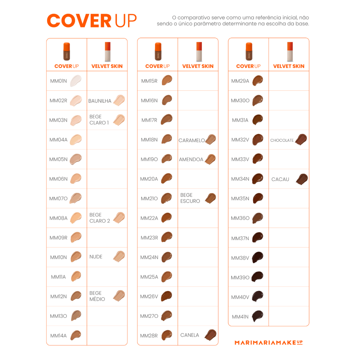Com secagem rápida e cobertura ajustável, que vai de média a alta, a base Cover Up se adapta às diferentes necessidades, proporcionando um resultado personalizado. A base uniformiza o tom da pele e disfarça com naturalidade imperfeições como manchas, cicatrizes, marcas e olheiras, tudo isso com alta durabilidade para manter a pele impecável ao longo do dia.