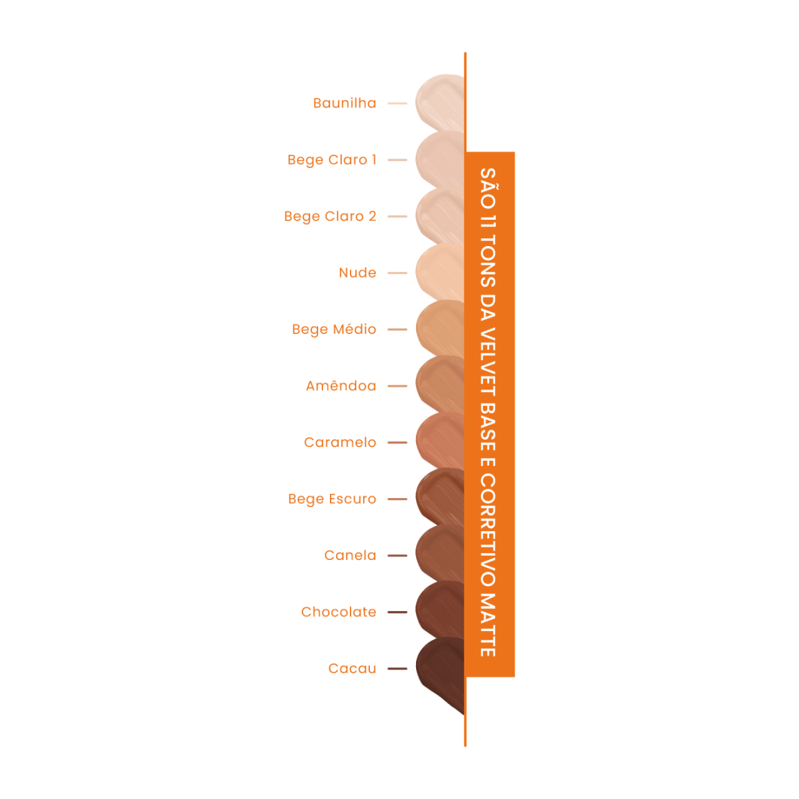 A nova Base e Corretivo Velvet Skin combina um acabamento aveludado e proporciona cobertura média à alta, possui longa duração e ajuda a minimizar as imperfeições.