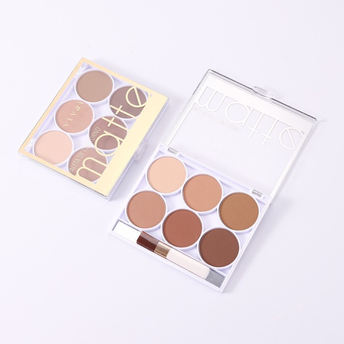 A paleta de contorno Vivai 1058 é composta por tons matte. Os tons escuros são ideias para fazer contorno e/ou usar como blush, e os tons mais claros são ideias para criar ponto de iluminação do rosto ou realçar as áreas desejadas.