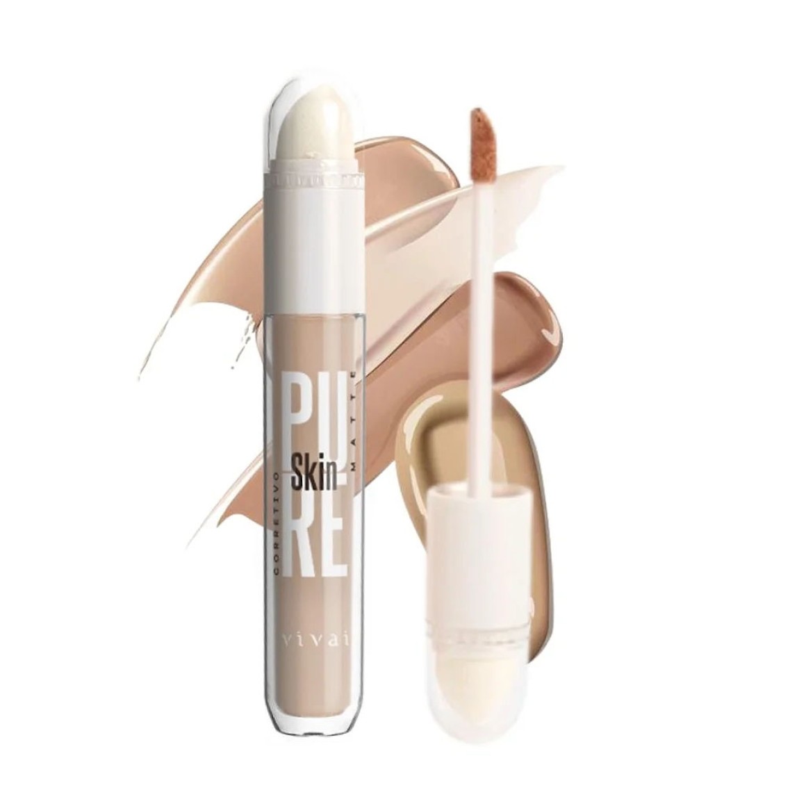 O Corretivo Líquido Pure Skin da Vivai tem excelente cobertura e acabamento matte. Além de corrigir imperfeiçoes pode usar para iluminar as regiões que deseja destacar.