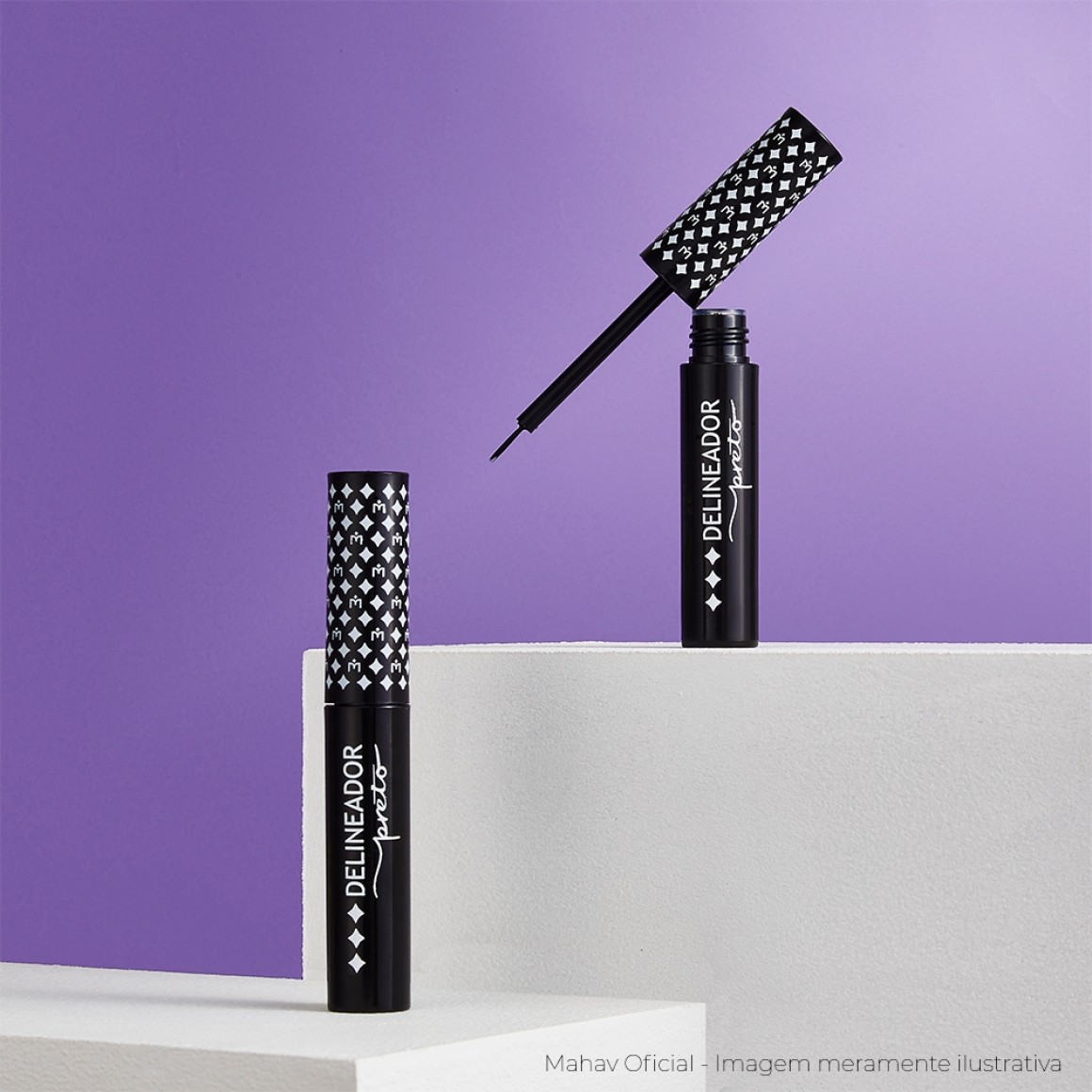 Delineador líquido preto. Bem pigmentado, é ideal para dar destaque aos olhos com delineado perfeito. Delineador Líquido Preto tem o pincel aplicador com ponta fina, proporcionando criar traços finos, delicados e precisos ou mais grossos, como você preferir. Sua fórmula garante secagem rápida.