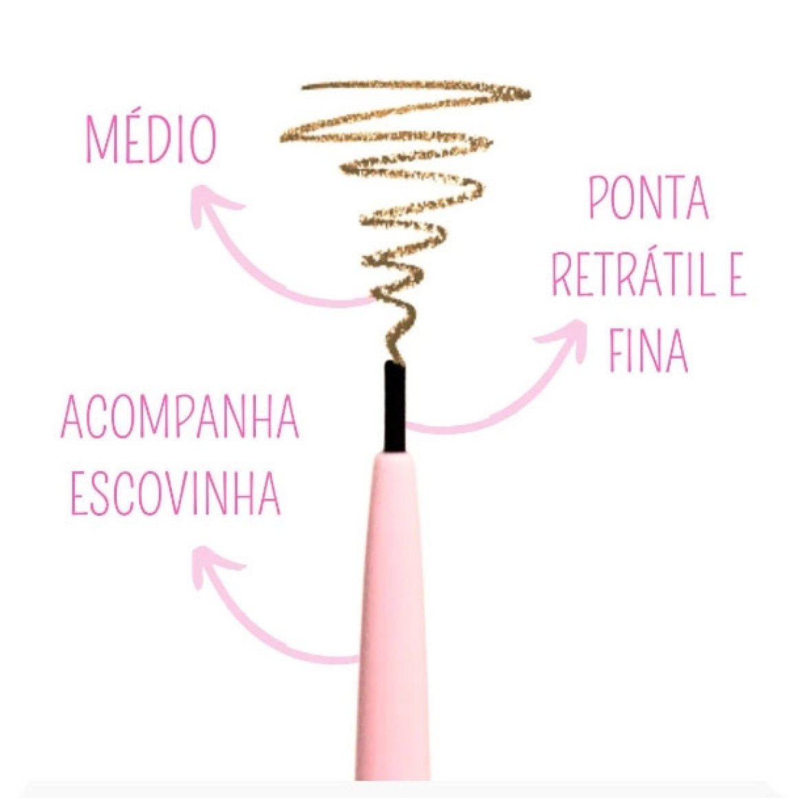 O Lápis para Sobrancelha 2x1 Melu possui um tom escuro com uma ponta super fina e retratil, ideal para preencher falhas na sobrancelhas, tem a ponta macia e já vem com uma escovinha na ponta oposta ao lápis para ajeitar os pelinhos e pentear.