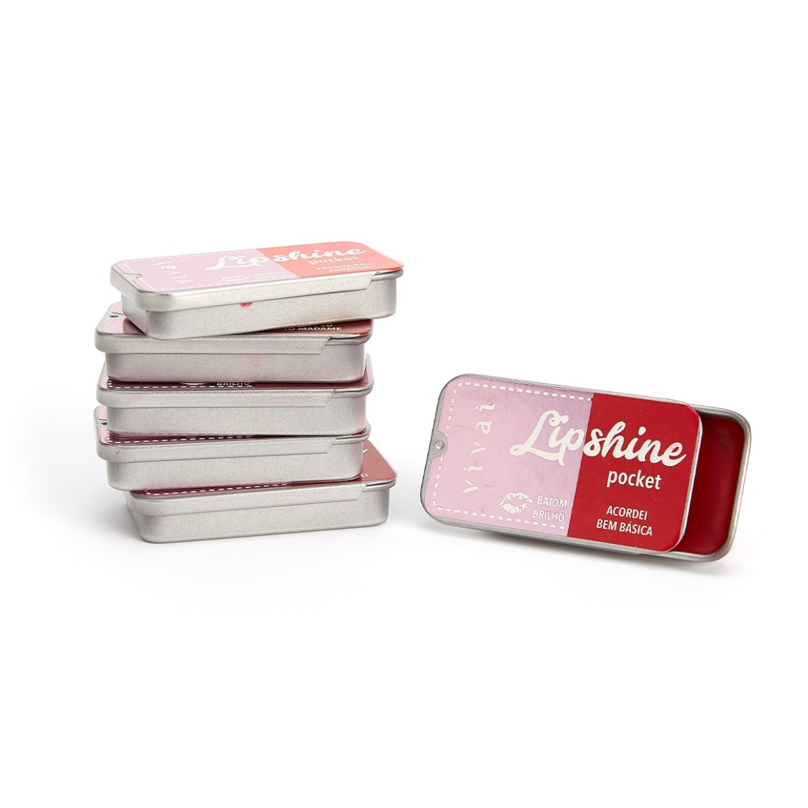 O Batom Pocket Lip Shine Vivai possui 6 cores LINDÍSSIMAS que variam entre rosa e vermelho, ambas prometem hidratar e pigmentar, deixando seus lábios ainda mais lindos e prontos pra qualquer ocasião. Ele possui um brilho perfeito e uma embalagem feita de lata super fofa, que serve pra você levar pra qualquer lugar e também pra deixar de enfeite na sua penteadeira!