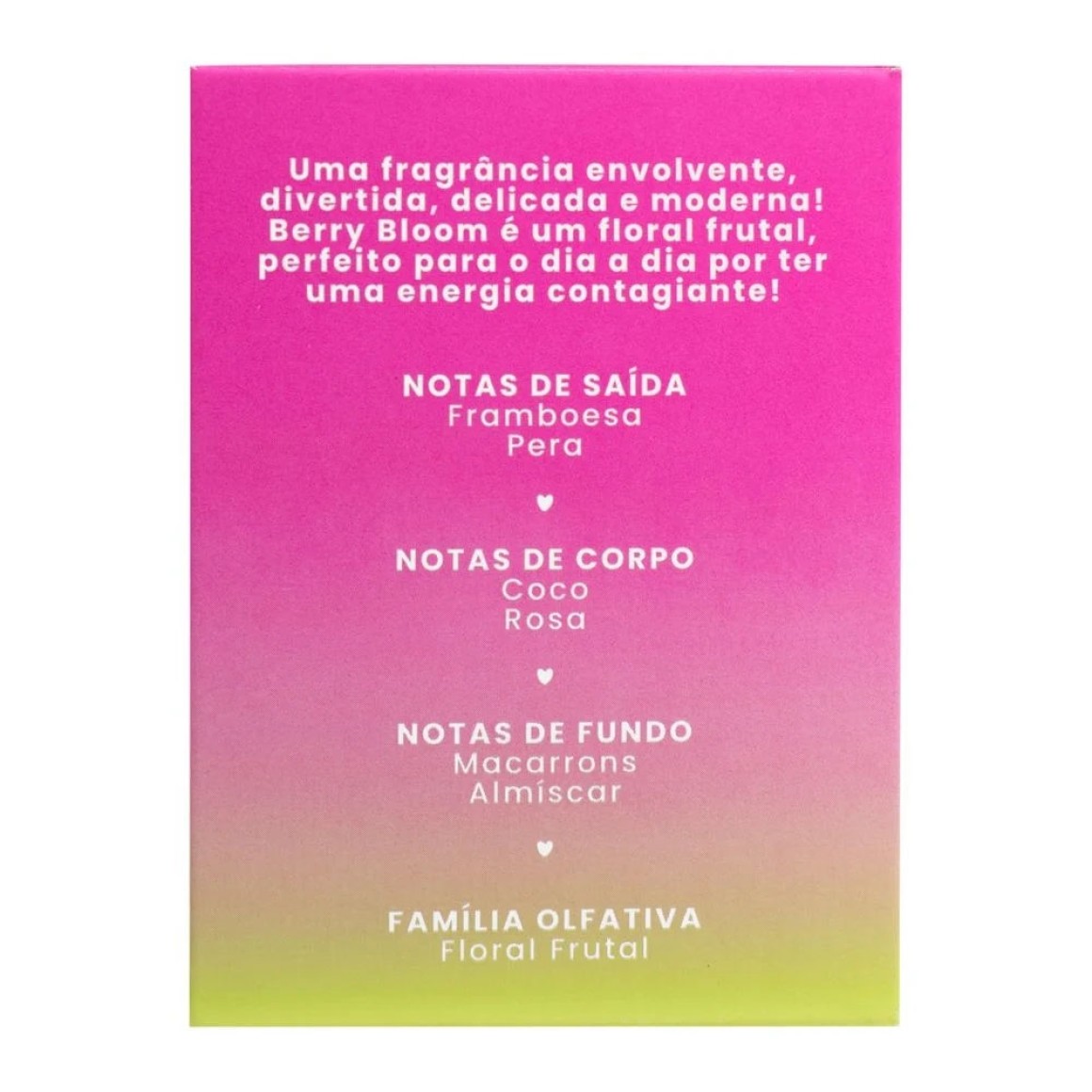 Colônia Berry Bloom Melu O Perfume Berry Bloom Melu é um floral frutal, perfeito para o dia a dia por ter uma energia contagiante. É uma fragrância envolvente, divertida, delicada e moderna.