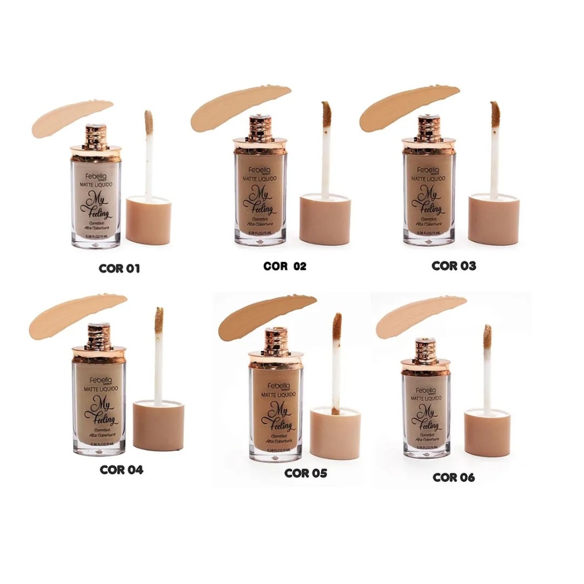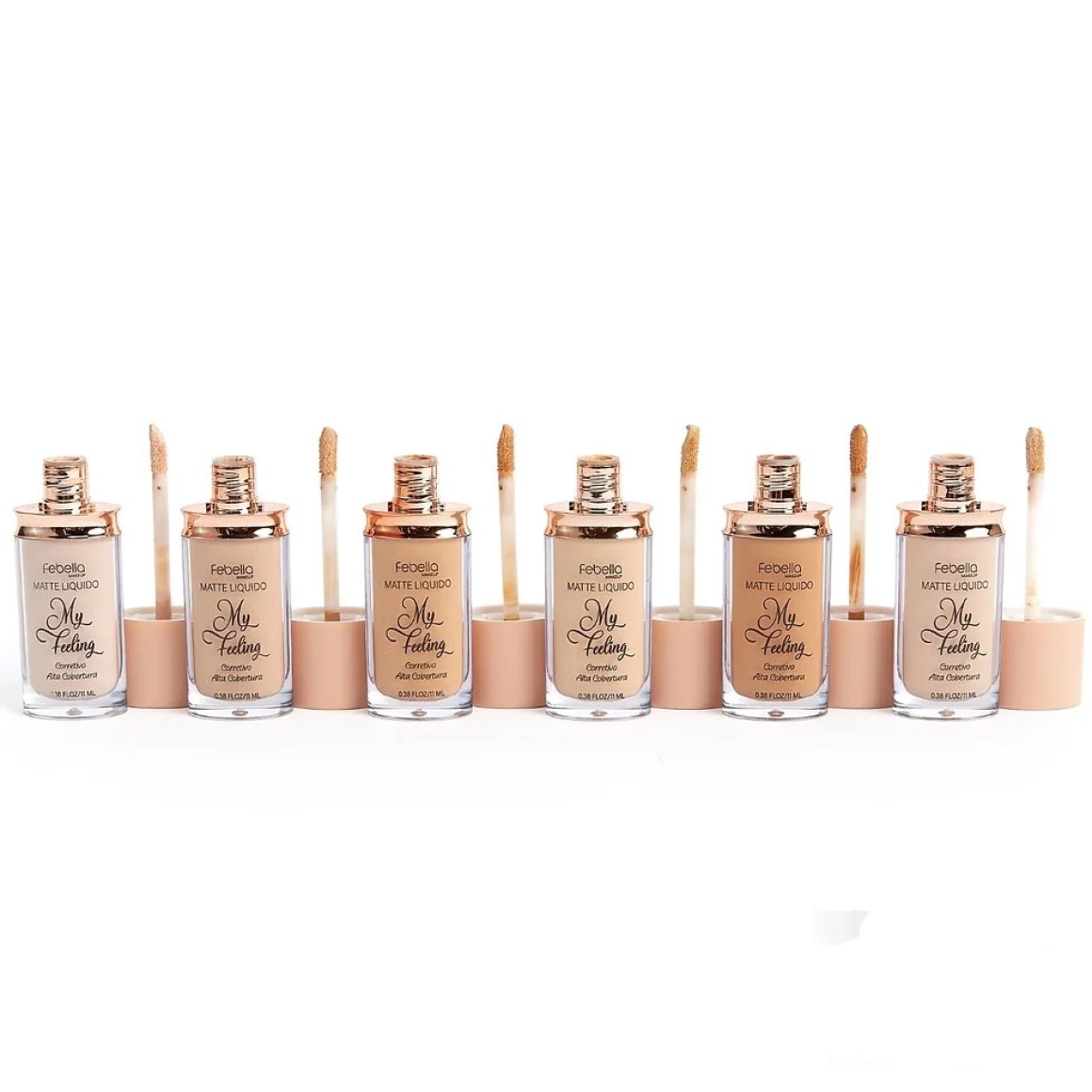 Kit 6 Corretivo Líquido Matte Alta Cobertura My Feeling Febella