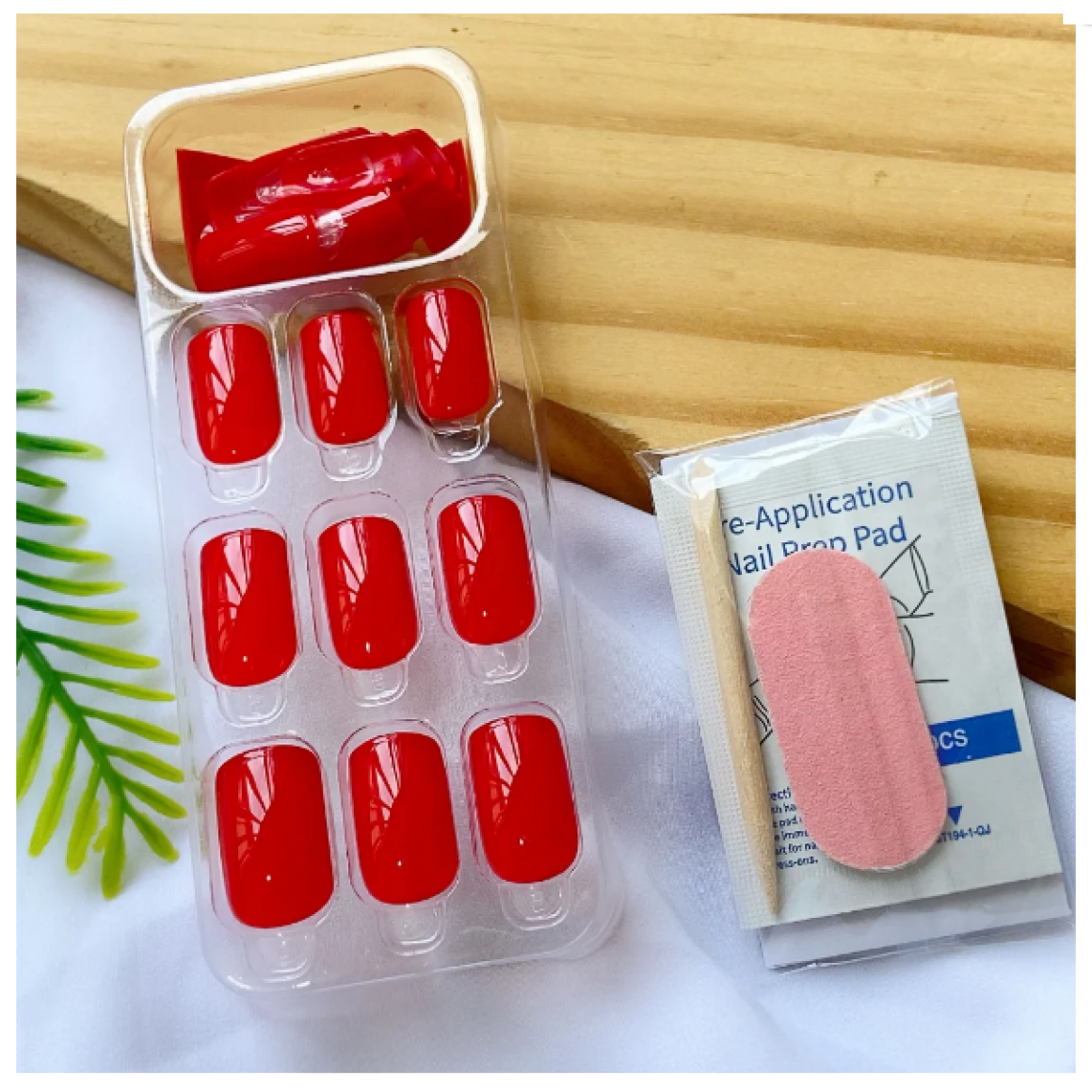 Cada Kit contém 24 unhas postiças com adesivo autocolantes, 2 lenços umedecidos, 1 lixa e 1 palito