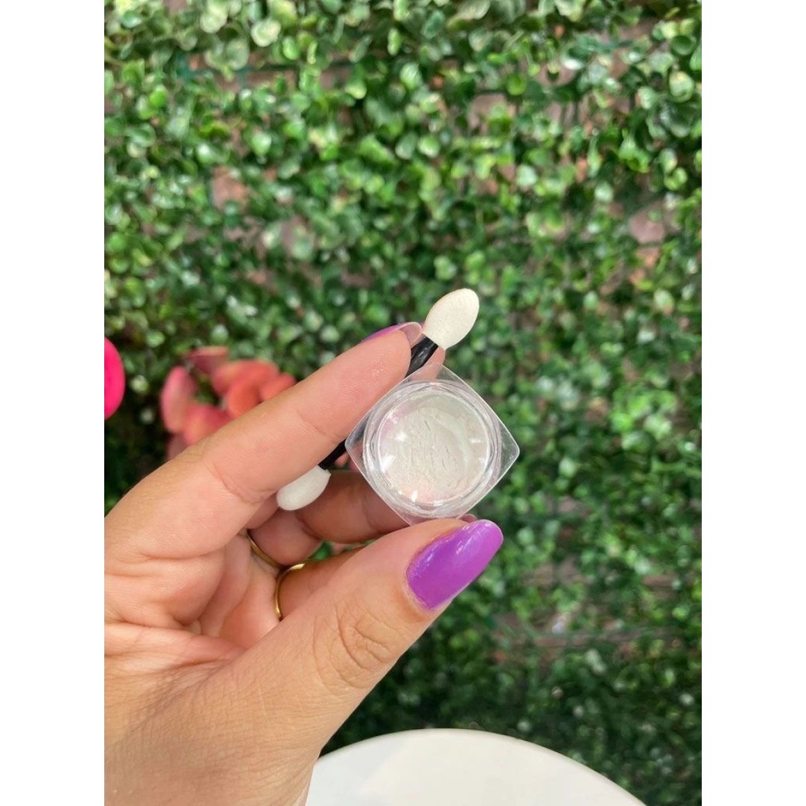 Aplicação do Pó: Após secar a camada de base, aplique uma pequena quantidade de pó na unha usando um aplicador de sombra ou esponja.