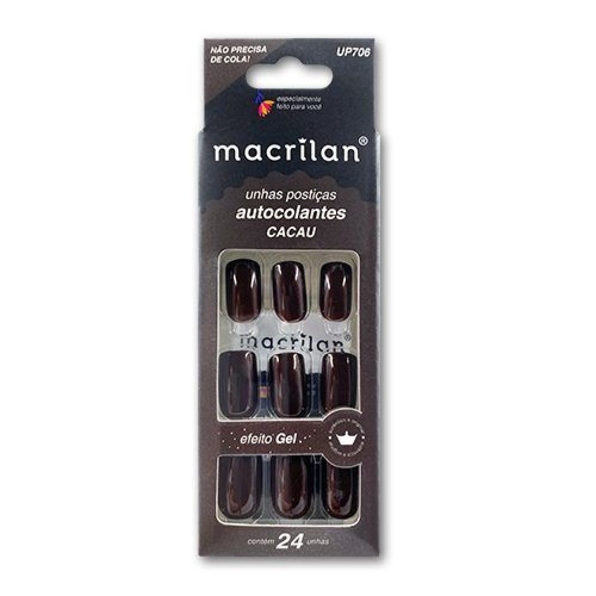Unhas Postiças Autocolantes Cacau Efeito Gel Macrilan