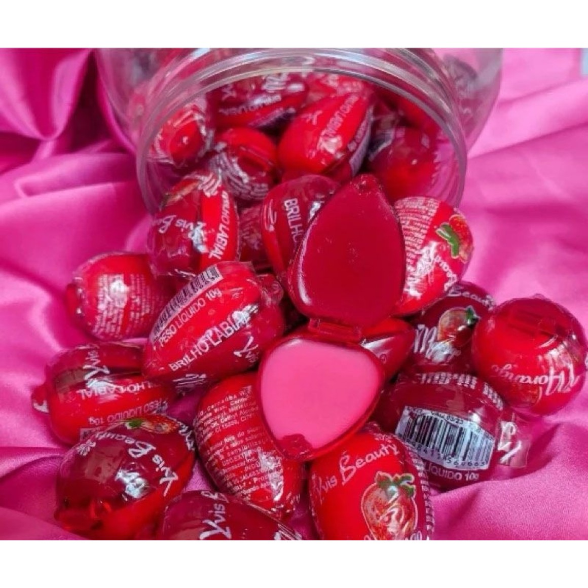 Brilho Labial Yvis Beauty Moranguinho 2 cores: de um lado rosado e do outro vermelho. O clássico brilho em formato de frutinhas é famoso pelo seu sabor e aroma de morango e pela sua ação de hidratação e brilho. Sucesso nos anos 80. Sua fina camada é capaz de promover volume e cobertura completa dos lábios.