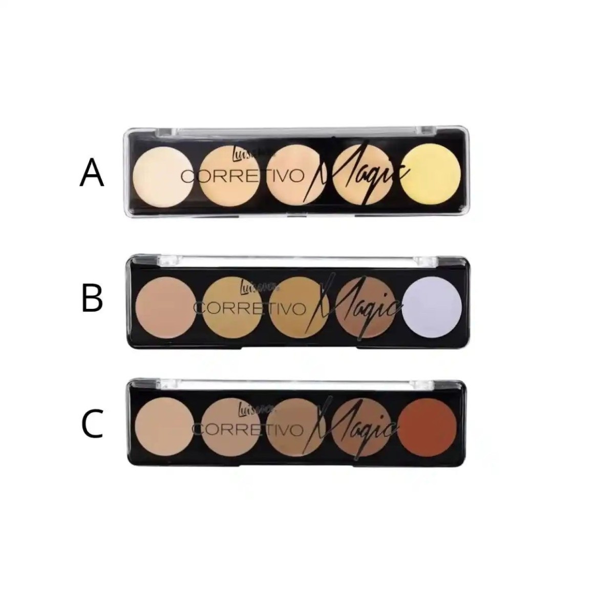Paleta de corretivos Magic Luisance, contém 05 cores que podem ser usadas para técnicas de correção, iluminação e contorno. com textura cremosa e excelente pigmentação, essa linda garante alta cobertura e acabamento profissional resultando em uma pele uniforme e sem imperfeições em apenas alguns passos.