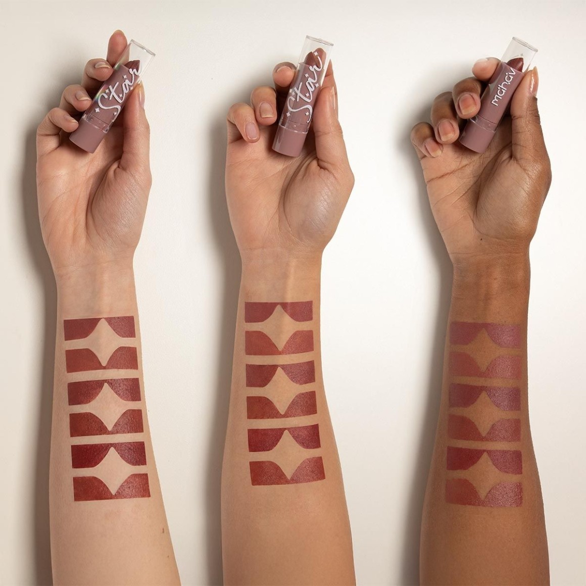 O Batom Bastão Star Mahav oferece textura cremosa e suave que desliza facilmente nos lábios, proporcionando aplicação uniforme e confortável. Com alta pigmentação já na primeira camada, forma uma película fina com cobertura intensa e sensorial confortável. Está disponível em acabamento SOFT MATTE e possui uma cartela com 6 cores clássicas e atemporais.