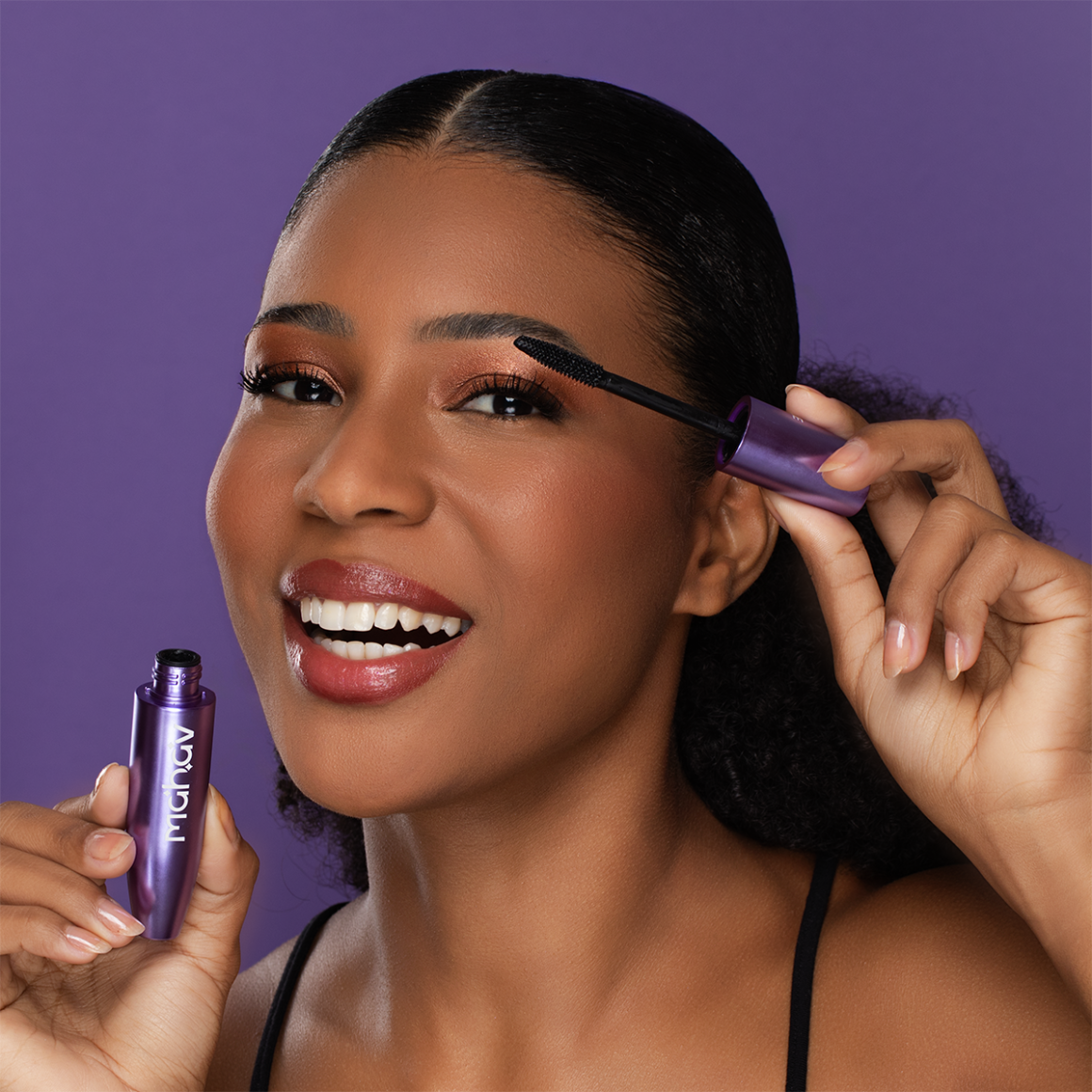 Aplique uma camada do produto rente aos cílios até as pontas, com movimentos de zig-zag para separar e alongar. Reaplique conforme necessário para intensificar o volume e o comprimento.