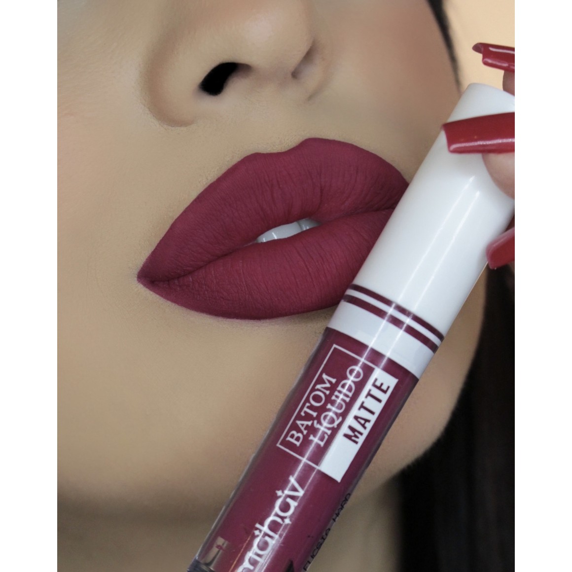 Batom labial com acabamento matte e longa duração. Com alta pigmentação, cobertura uniforme e sem manchas, você chega ao resultado desejado na primeira aplicação. Fácil de aplicar. Possui textura líquida, essência de uva, cores incríveis, acabamento fosco e uma cartela de cores perfeita para compor os mais diversos looks e composições.