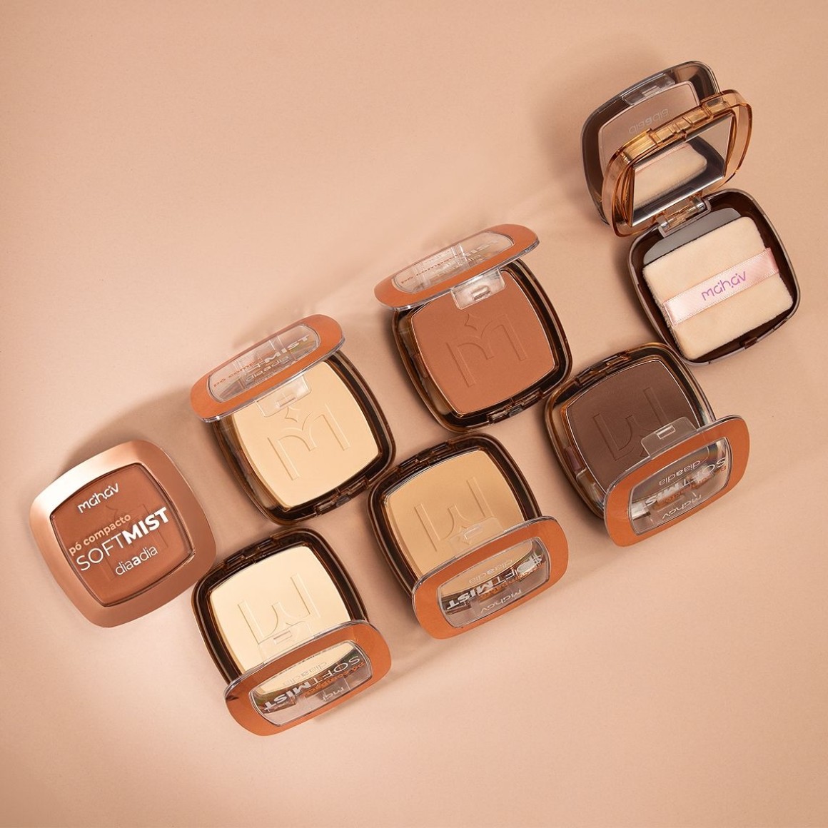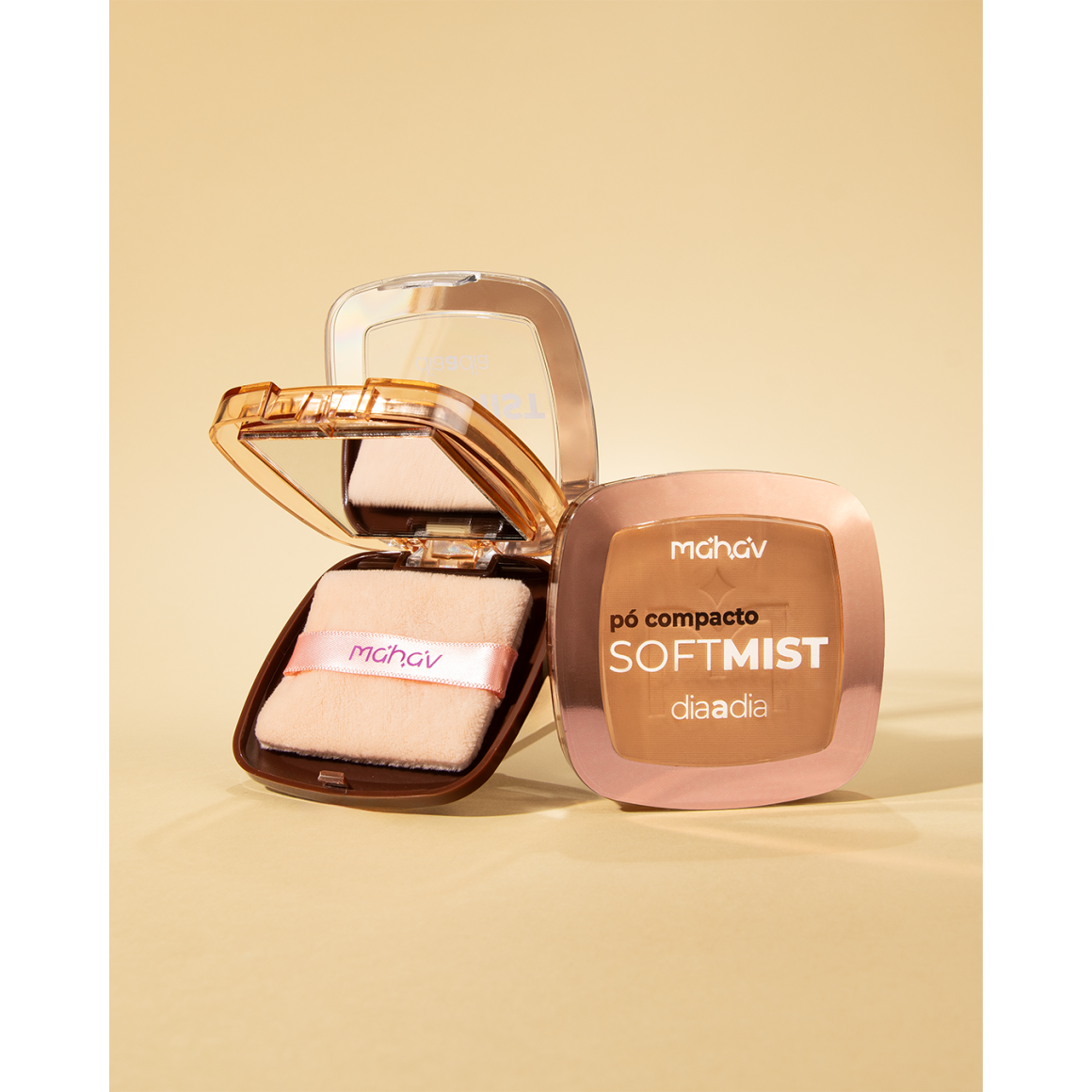 O Pó Facial Compacto Soft Mist Dia a Dia Mahav possui textura fina e aveludada. Sela, matifica, controla a oleosidade e adiciona cor. Acabamento suave e aparência uniforme, sem pesar. Ideal para finalizar a make com naturalidade e conforto. A cartela contém 5 tonalidades, desenvolvidas para atender diferentes tons de pele, entre claros, médios e escuros. Embalagem moderna, funcional e prática, com espelho integrado e esponja fluffy macia, leve e especial para aplicação de pó, ideal para retoques no dia a dia.