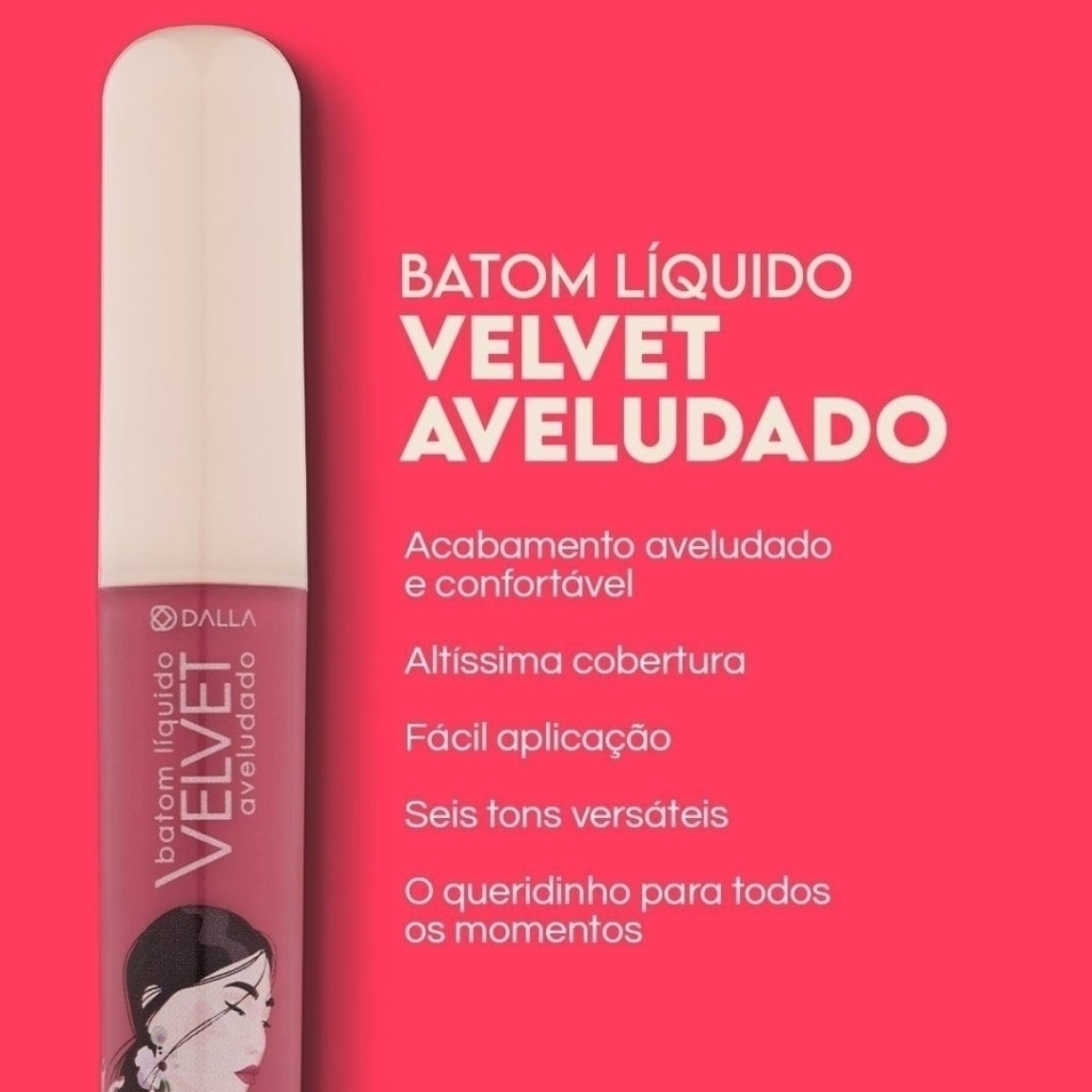 O Batom Líquido Velvet Aveludado é ideal para quem busca o acabamento fosco dos sonhos, mas sem abrir mão do conforto e do aspecto aveludado.