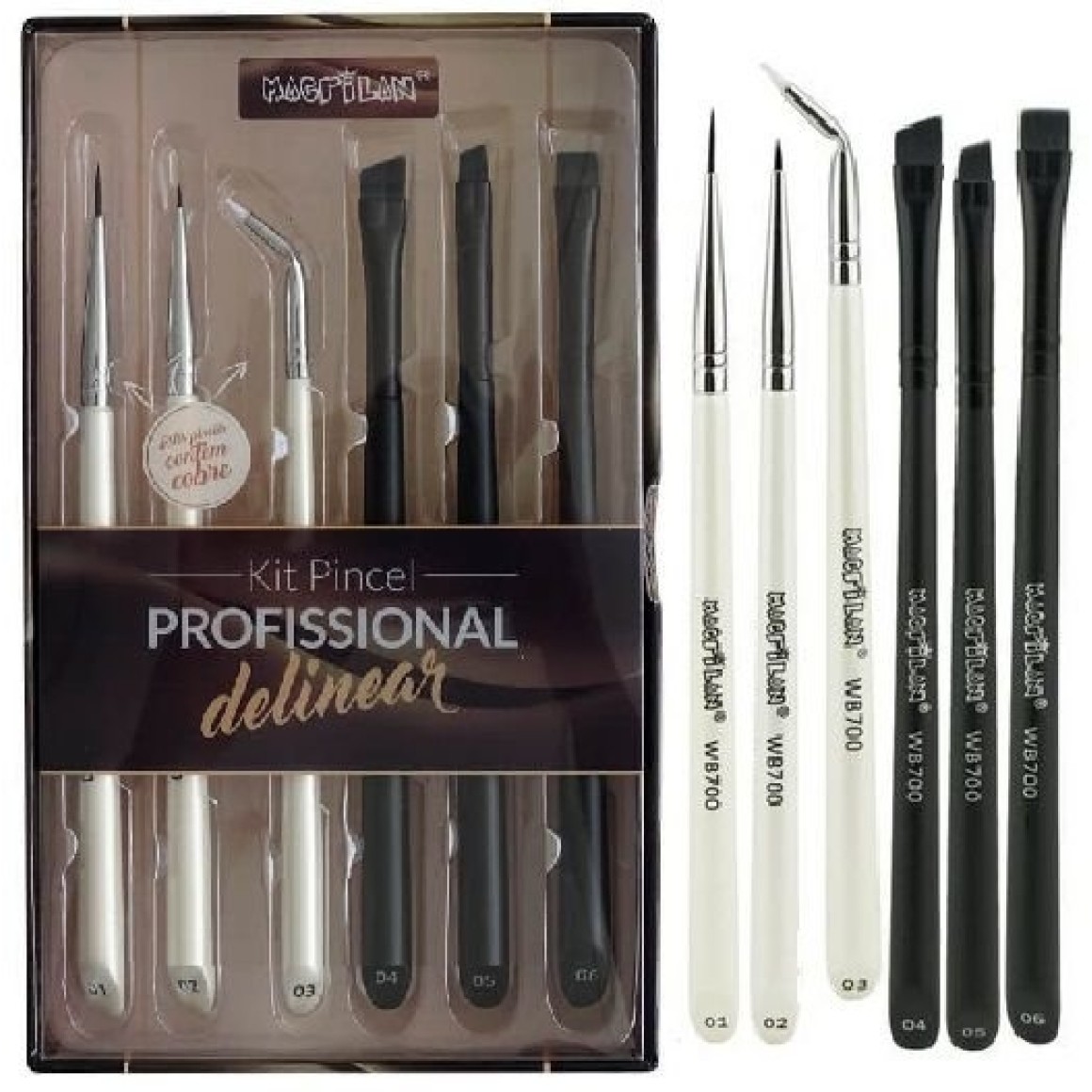 Kit Pincel Profissional para Delinear Macrilan WB700 c/6