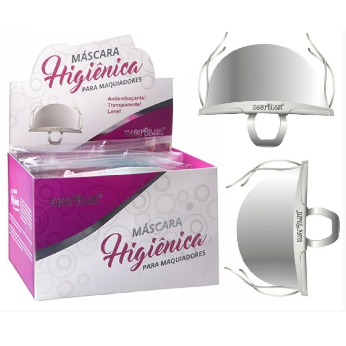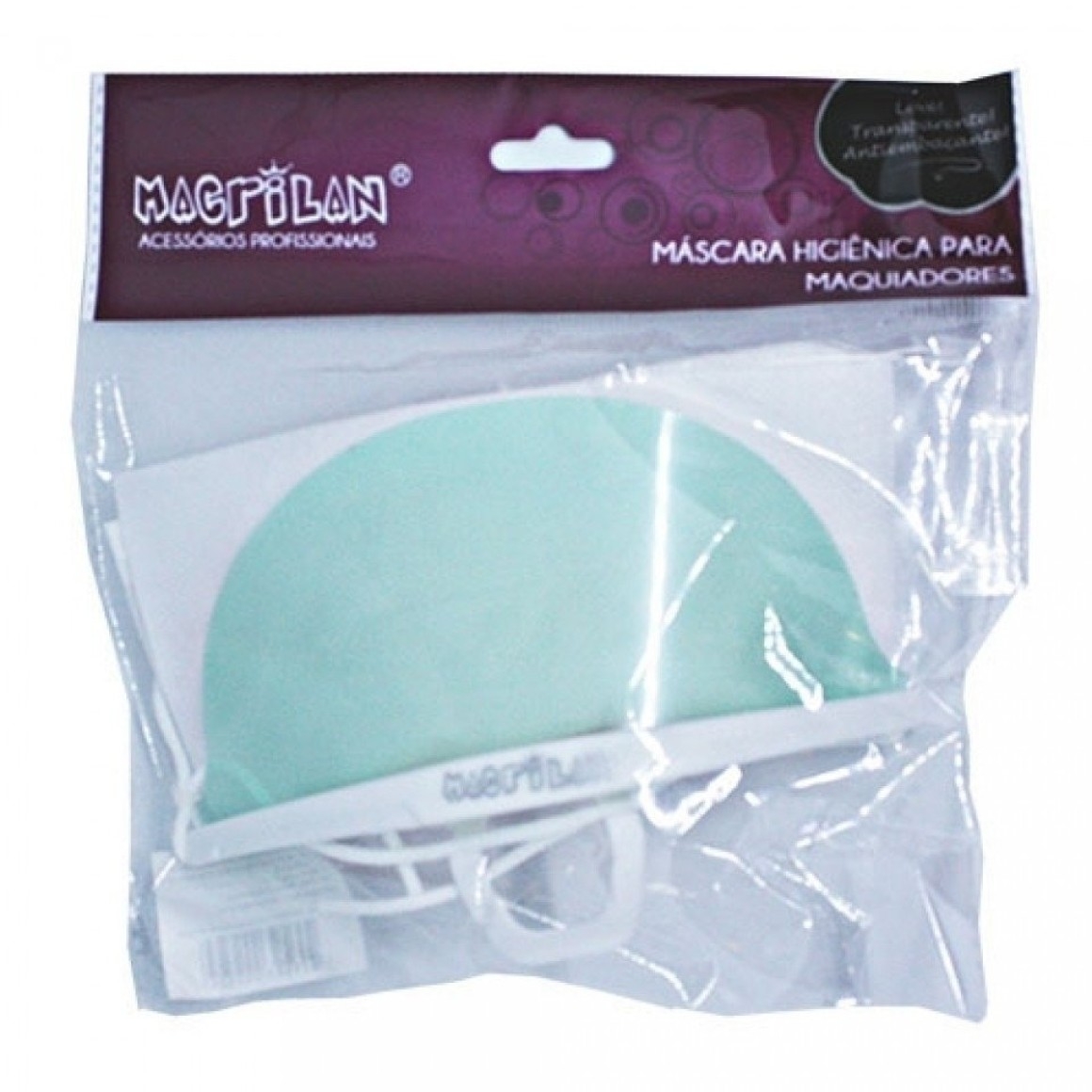 A Máscara Higiênica para Maquiadores da Macrilan AC-09 é indicada para utilização profissional pois impede que haja troca de ar e saliva entre o maquiador e o cliente durante todo o período de atendimento. É transparente, leve e de material antiembaçante, possui um apoio para o queixo e elásticos ajustáveis para maior conforto.