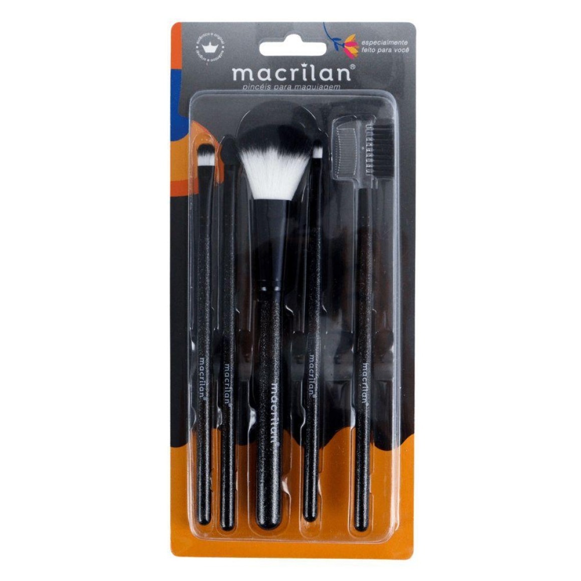 O Kit com 5 pincéis de maquiagem da Macrilan, foi desenvolvido com cerdas macias e arredondadas e é ótimo para ser levado na necessaire pois atende perfeitamente a necessidade de uma maquiagem básica do dia-a-dia.