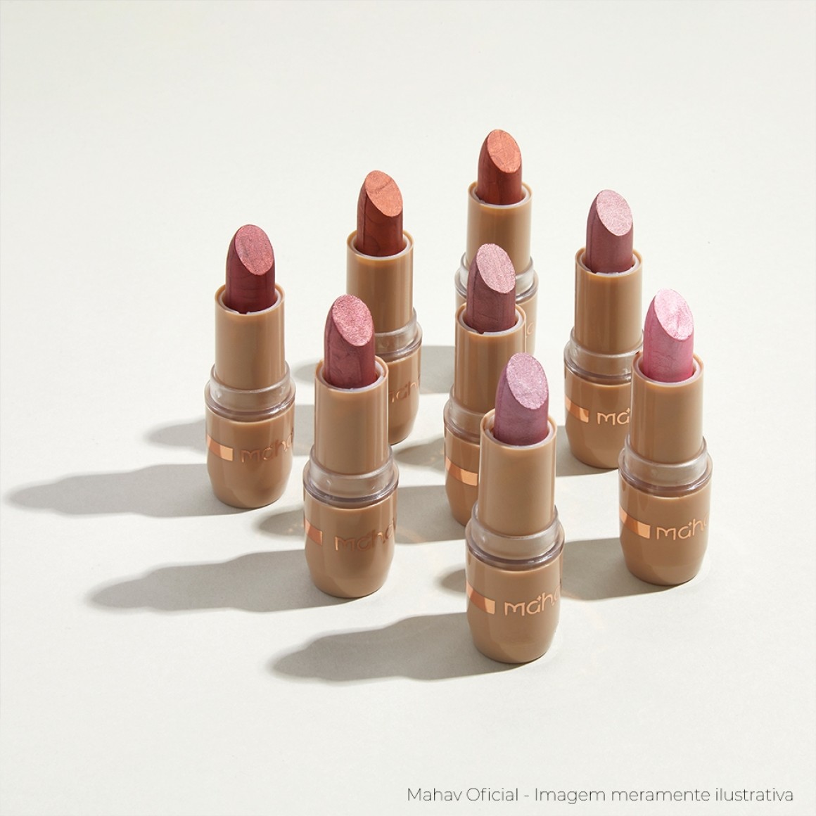 O BATOM CINTILANTE DIA A DIA MAHAV foi desenvolvido com agentes emolientes, que hidratam e disfarçam aquelas linhas finas ao redor e nos próprios lábios.