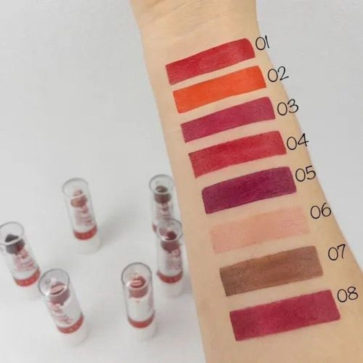 Aplique o batom sobre os labios ou com o auxilío de pincel , até obter o tom desejado.