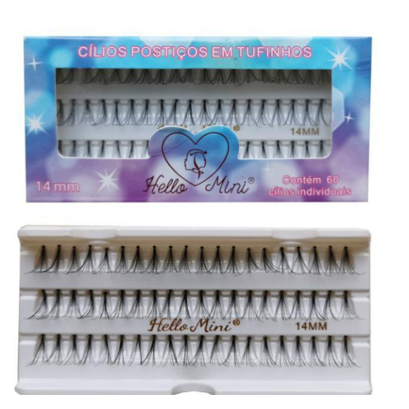 Cílios Postiços em Tufinhos 14 mm Hello Mini Os cílios em tufinhos da Hello Mini podem ser aplicados em toda a extensão da pálpebra ou somente na parte externa para realçar o olhar. Ideal para preencher e consertar falhas e também para dar volume aos cílios naturais.