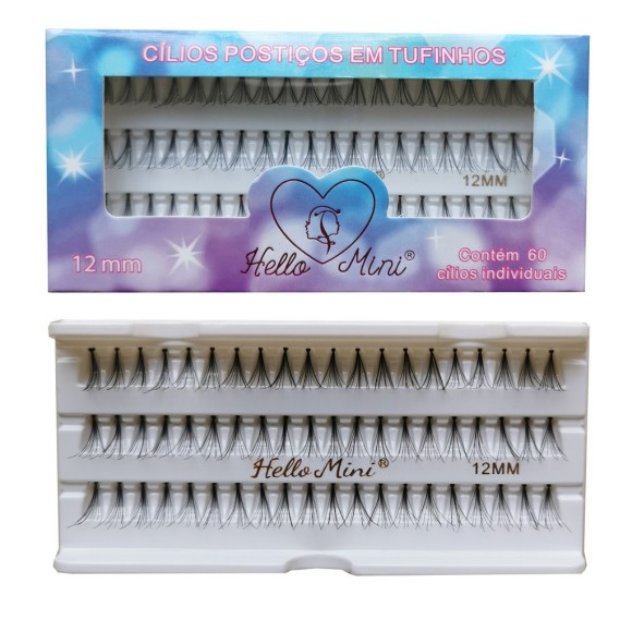 Cílios Postiços em Tufinhos 10 mm Hello Mini Os cílios em tufinhos da Hello Mini podem ser aplicados em toda a extensão da pálpebra ou somente na parte externa para realçar o olhar. Ideal para preencher e consertar falhas e também para dar volume aos cílios naturais.